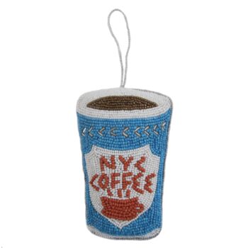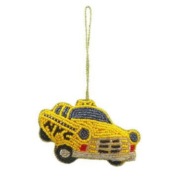 NYC Ornament Beaded Cosmo Rani Pink Beads w/Ny In Black Beads