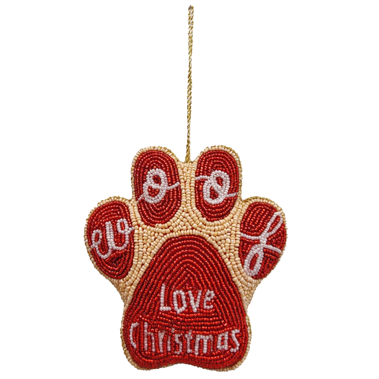 “Woof” Paw Beaded Ornament “Love Christmas”