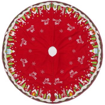 60in Santa, Snowman, Candy Cane & Flying Reindeer Christmas Scene Tree Skirt