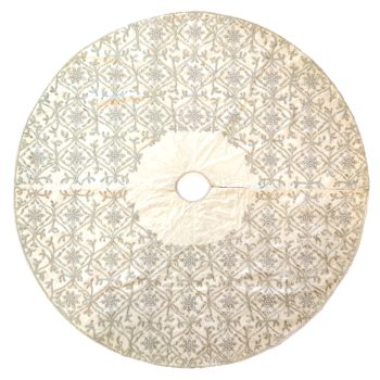 60″ Square Off-White Tissue Tree Skirt w/Silver & Gold Embroidery
