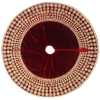 60″ Red Tree Skirt w/Gold Sequins Hemispheres w/Multi Color Gems