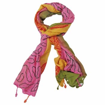 Blue & Orange Tie Dye Hand Block Printed Cotton Scarf