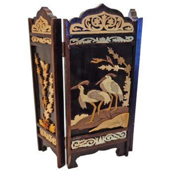 3-Panel Marquetry inlaid Miniature Wood Screen