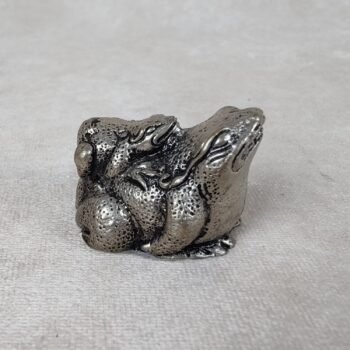 White Metal Miniature Frog Carrying Frog on Back – Netsuke