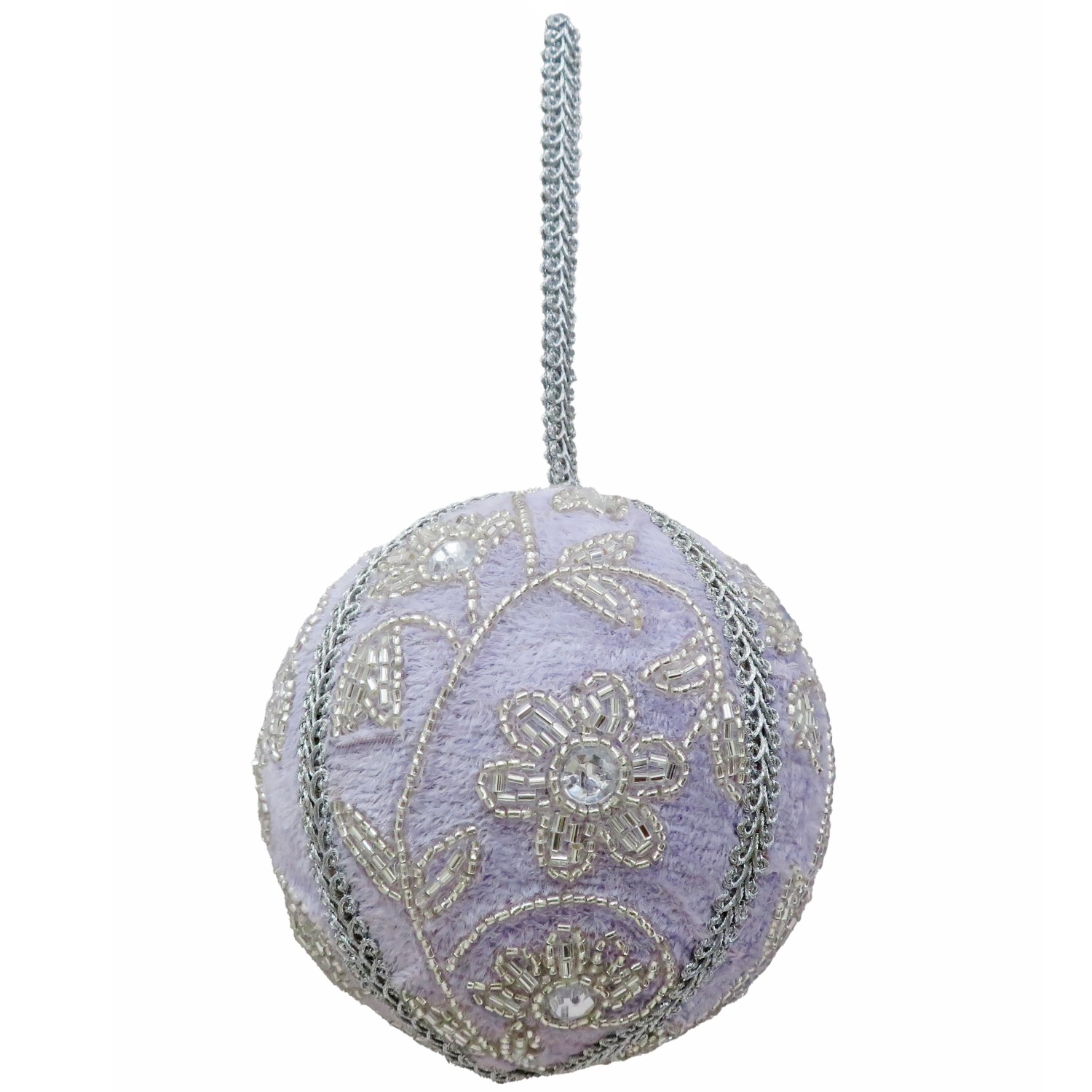 4" Lavendar Bauble w/Silver Flower Vine quantity
