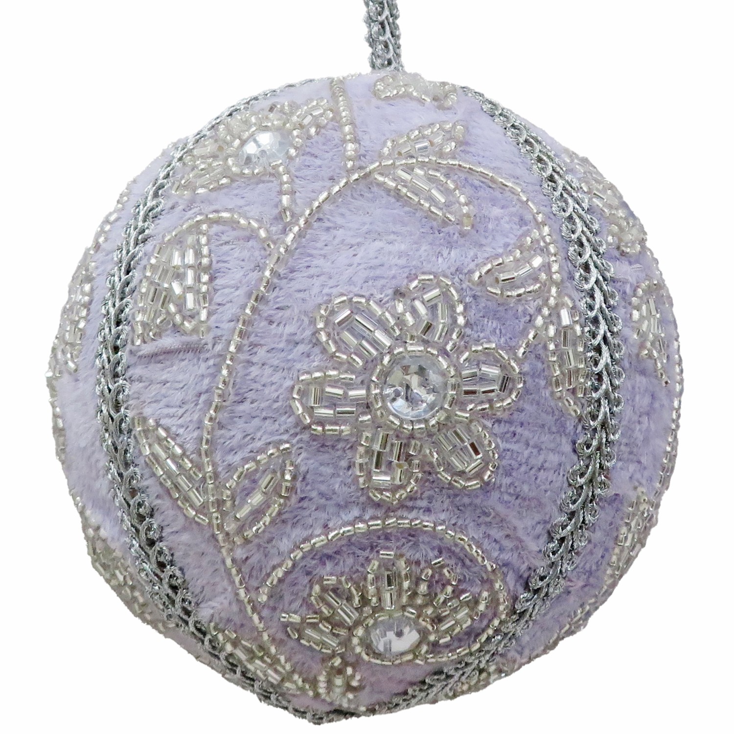 / 4″ Lavendar Bauble w/Silver Flower Vine