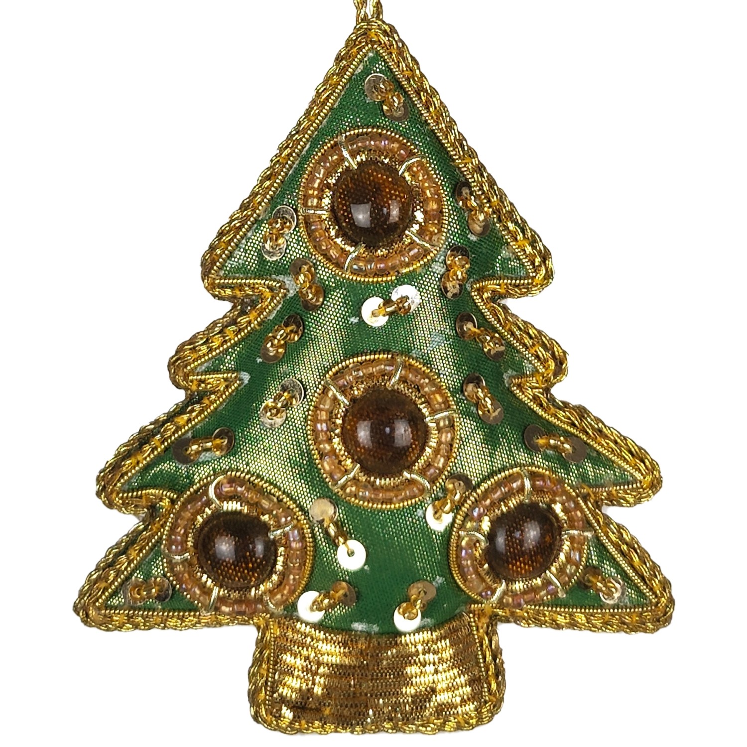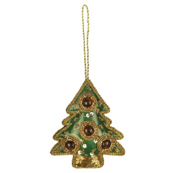 Tree Ornament , Green Lurex Base w/Amber Stones