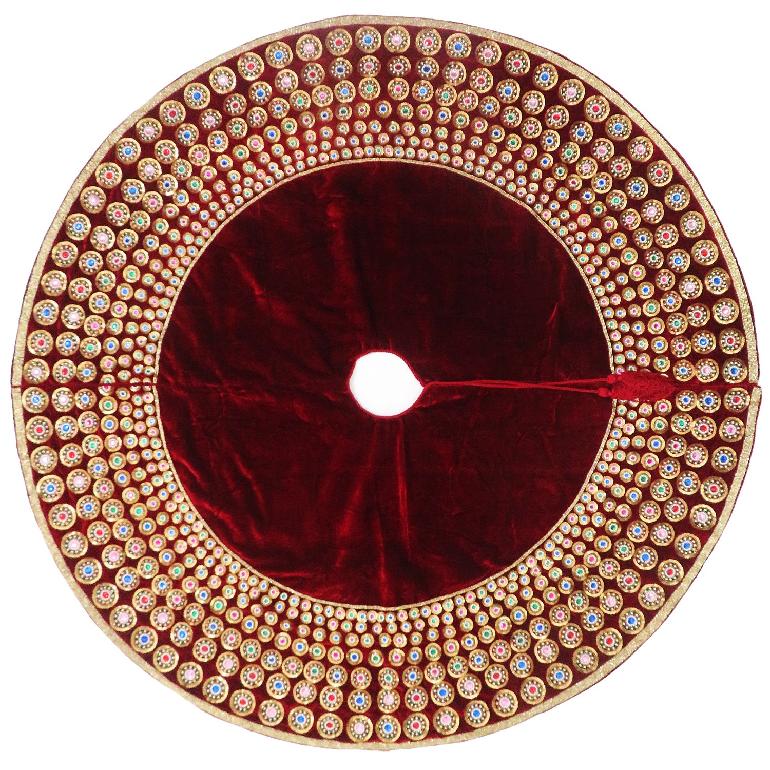 60″ Red Tree Skirt w/Gold Sequins Hemispheres w/Multi Color GemsAvailability: Only 1 left in stock