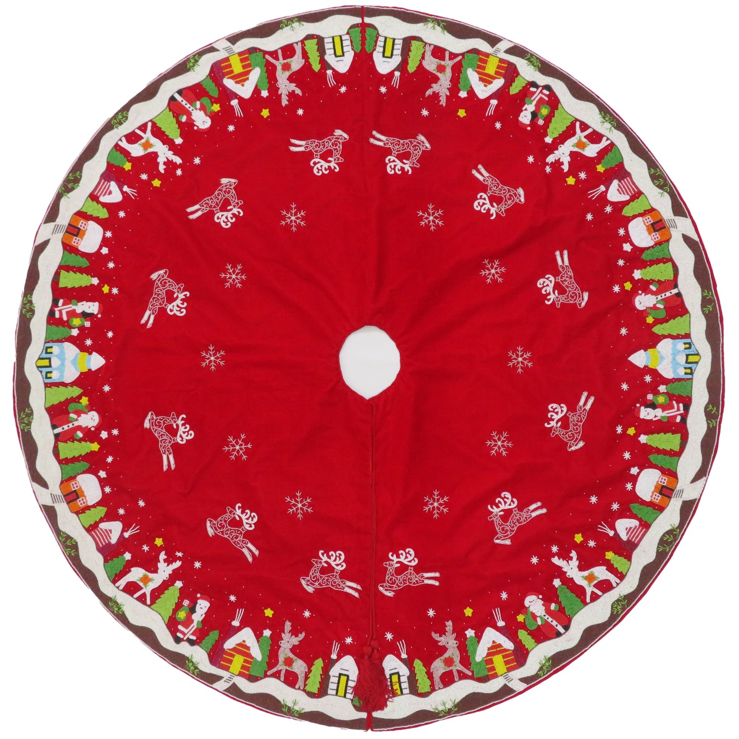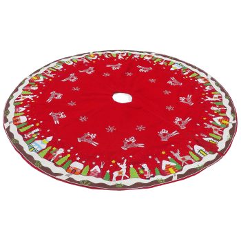 60in Santa, Snowman, Candy Cane & Flying Reindeer Christmas Scene Tree Skirt60in Santa, Snowman, Candy Cane & Flying Reindeer Christmas Scene Tree Skirt