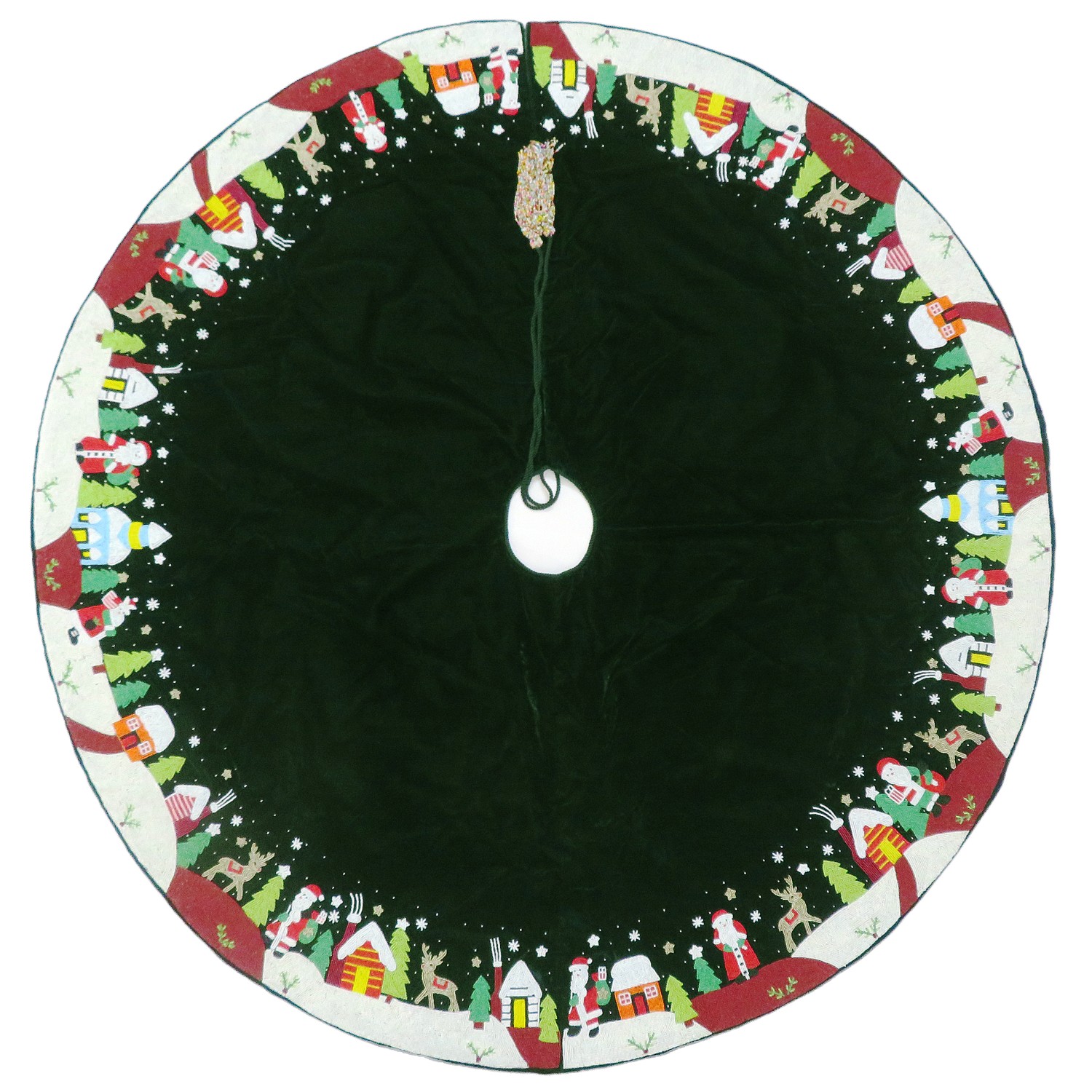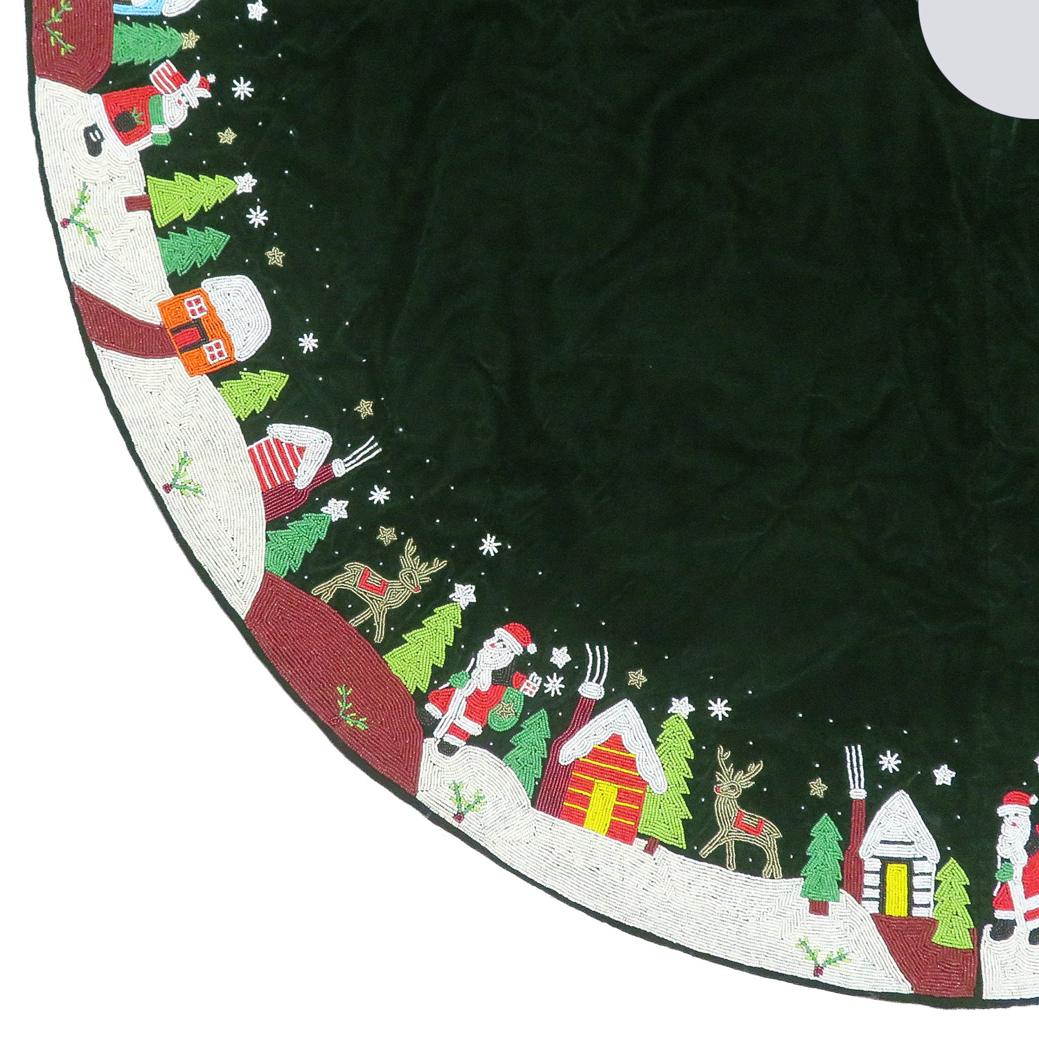 Green Ashwani Velvet Tree Skirt w/Beaded Santa Scenes BorderAvailability: Only 1 left in stock