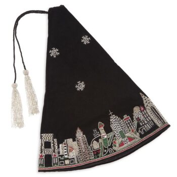 NYC Tree Skirt 50″ Black Velvet w/Beaded NYC Skyline
