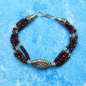 3 Strand Garnet & Sterling Bracelet