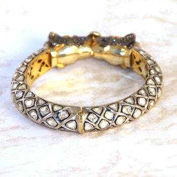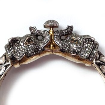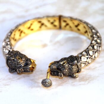 Indian Royalty wore bangles with elephant or lions head at the end of their bangles for power and glory. Polki diamond elephant head w /SS and 14karat gold base