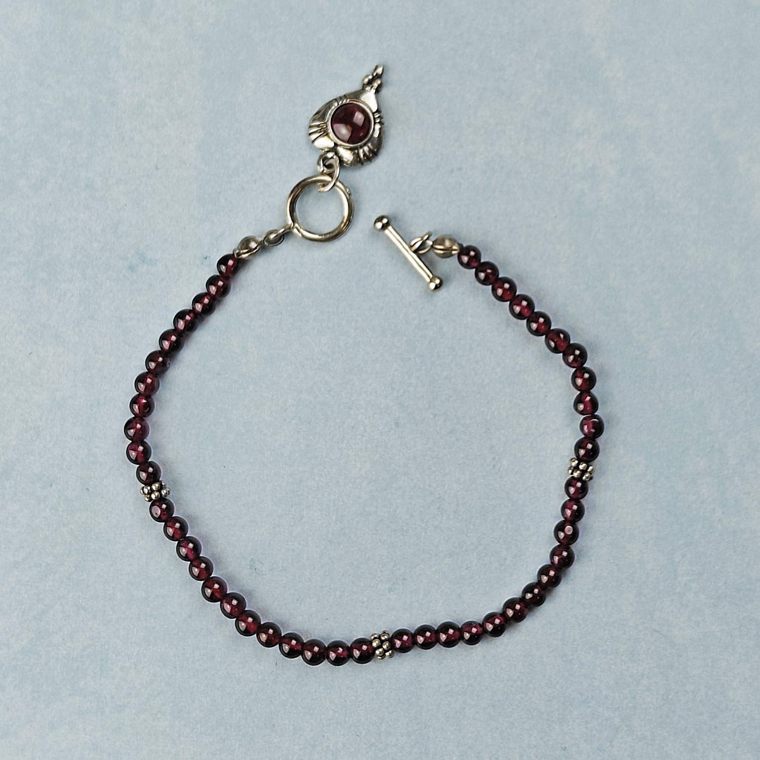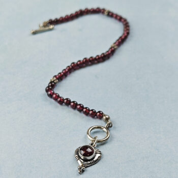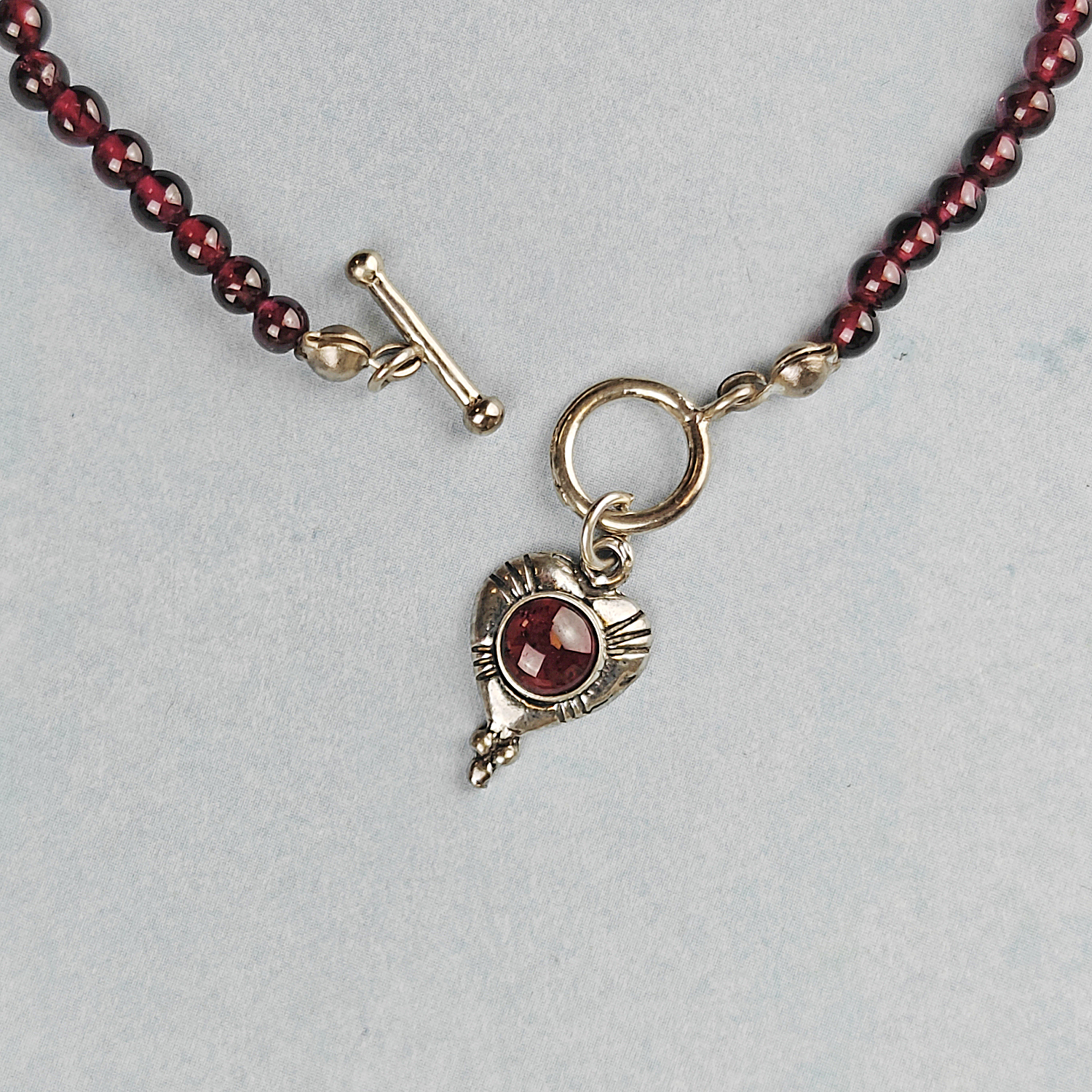 Garnet & Sterling Bracelet w/SS Heart Pendant