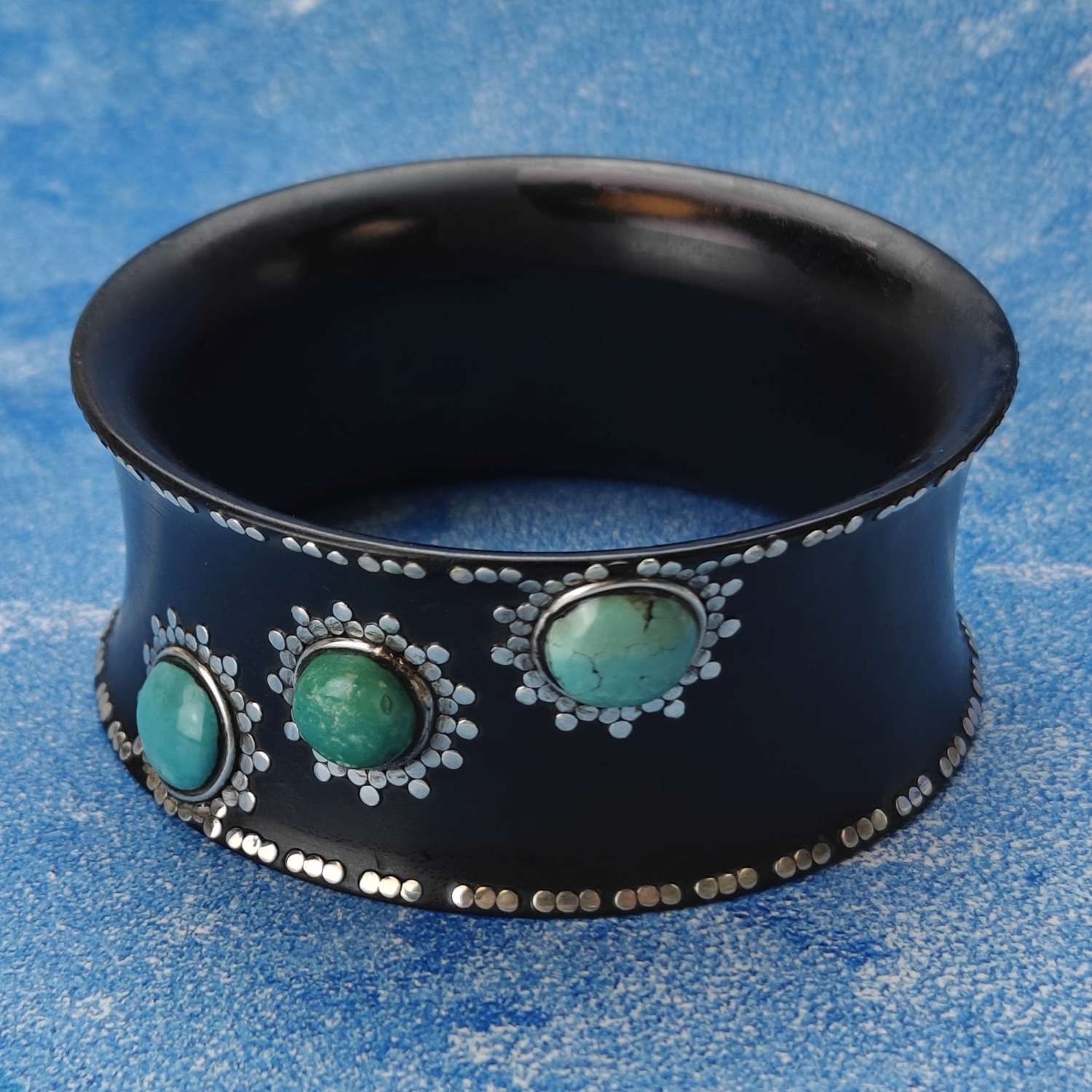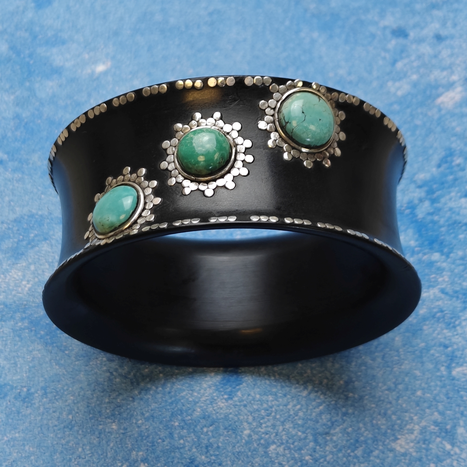 Wood Bangle w/Sterling & TurquoiseAvailability: Only 1 left in stock