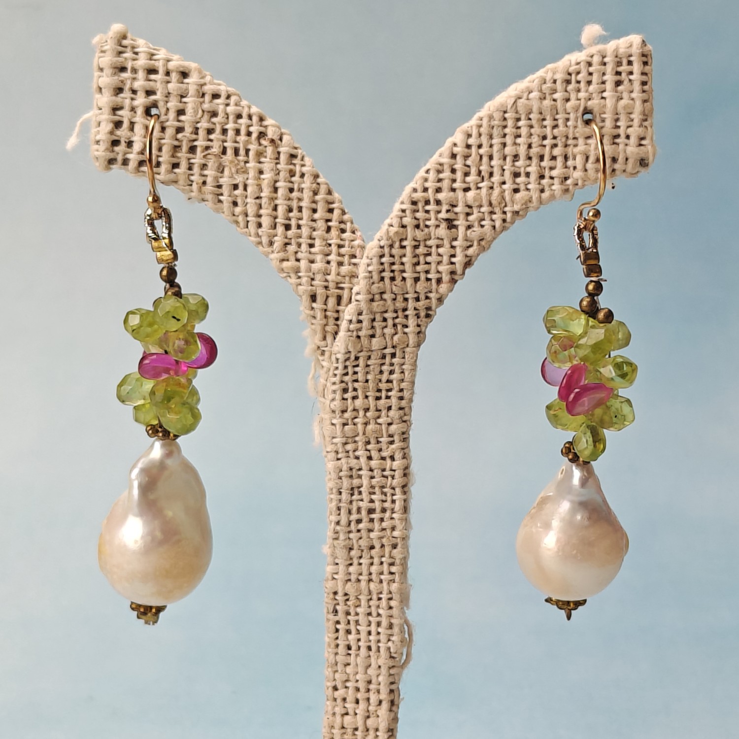 Biwa Pearl & Peridot EarringBiwa Pearl & Peridot Earring