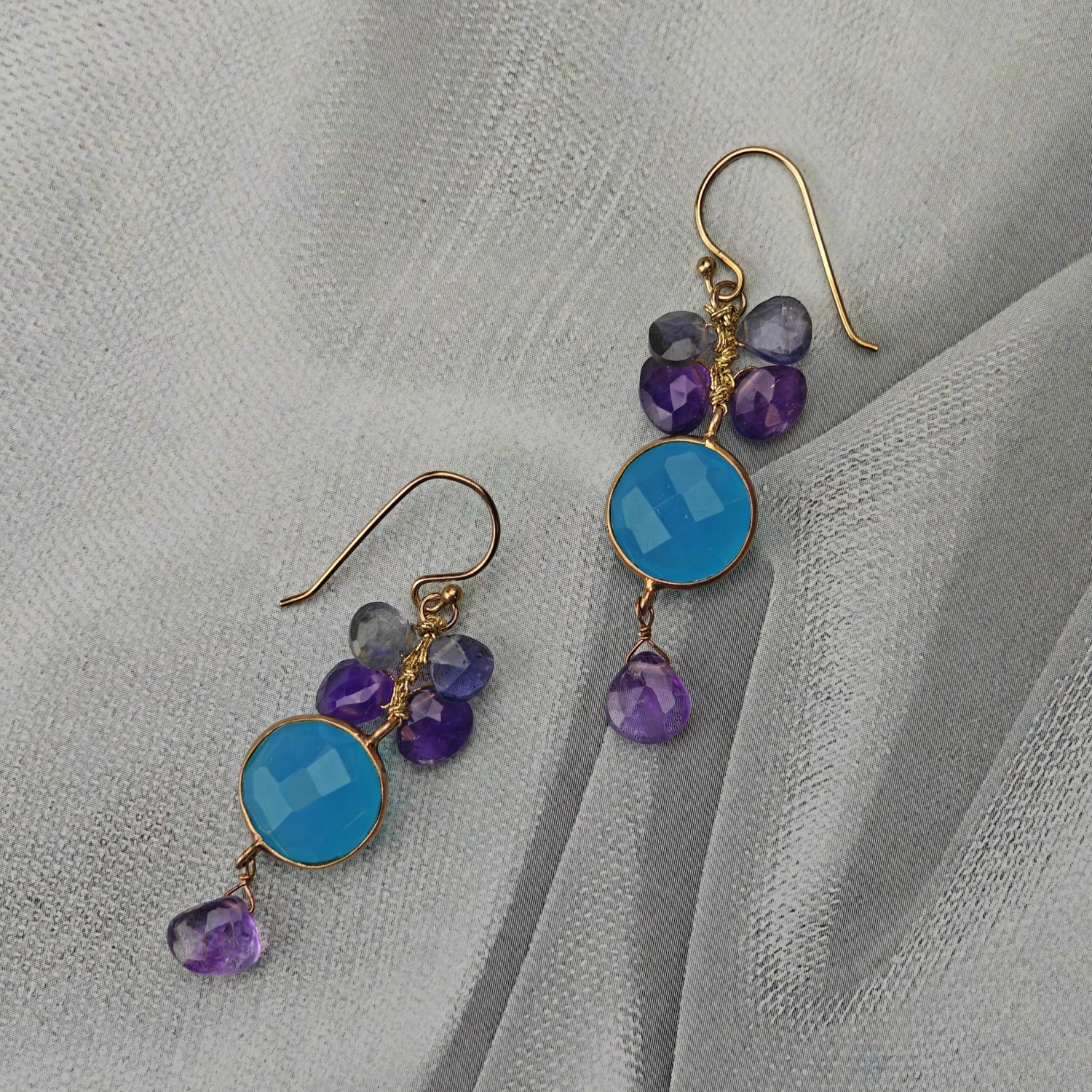 Blue Chalcedony, Kyanite & Amethyst Earring