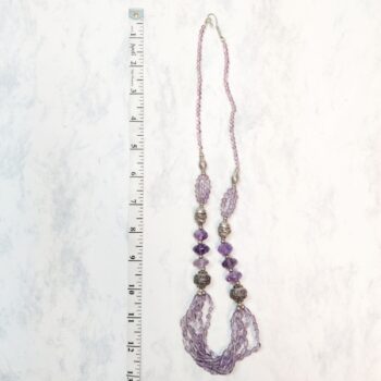 6 Strand Amethyst Necklace w/Antique Silver Amulets
