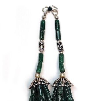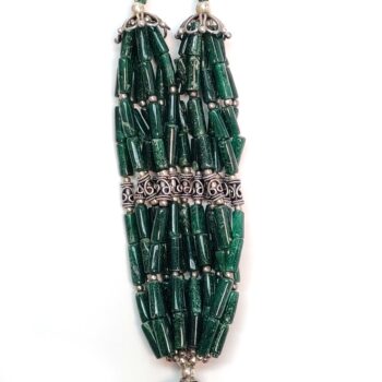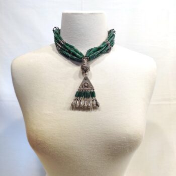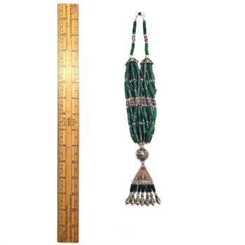 Antique sterling pendent set with multi strand aventurine tubes . Amulets from Rajasthan, India