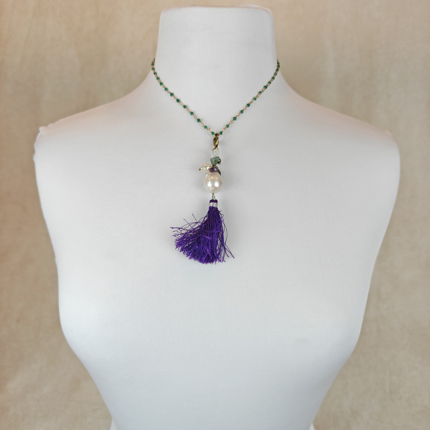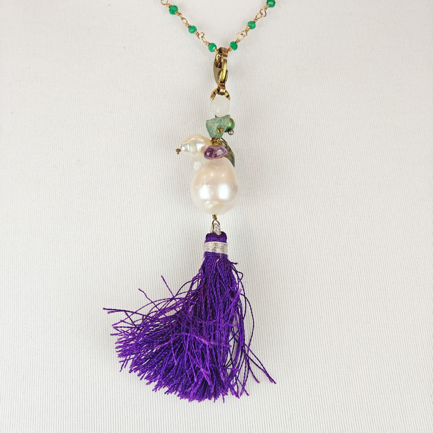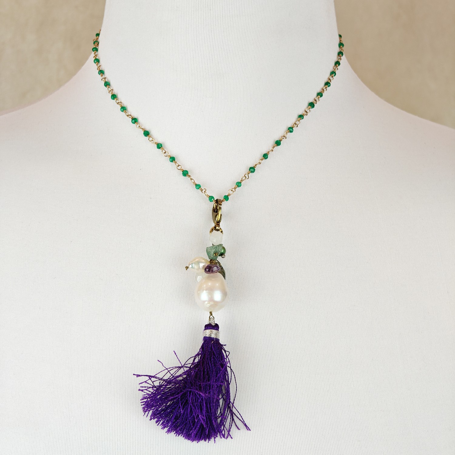 Emerald Agate Necklace w/Baroque Pearl PendantAvailability: Only 1 left in stock