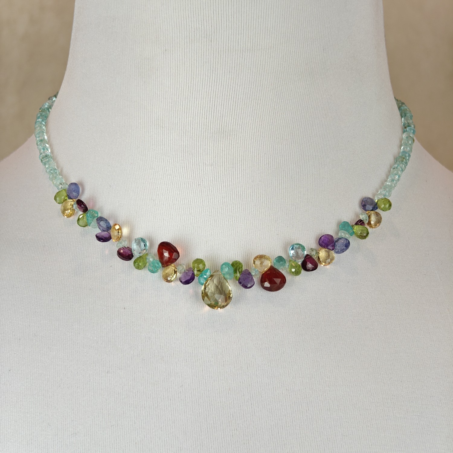 Tanzanite, Blue Topaz, Aquamarine, Lemon Quartz, Apatite, Peridot, Garnet, Citrine, Amethyst NecklaceAvailability: Only 1 left in stock