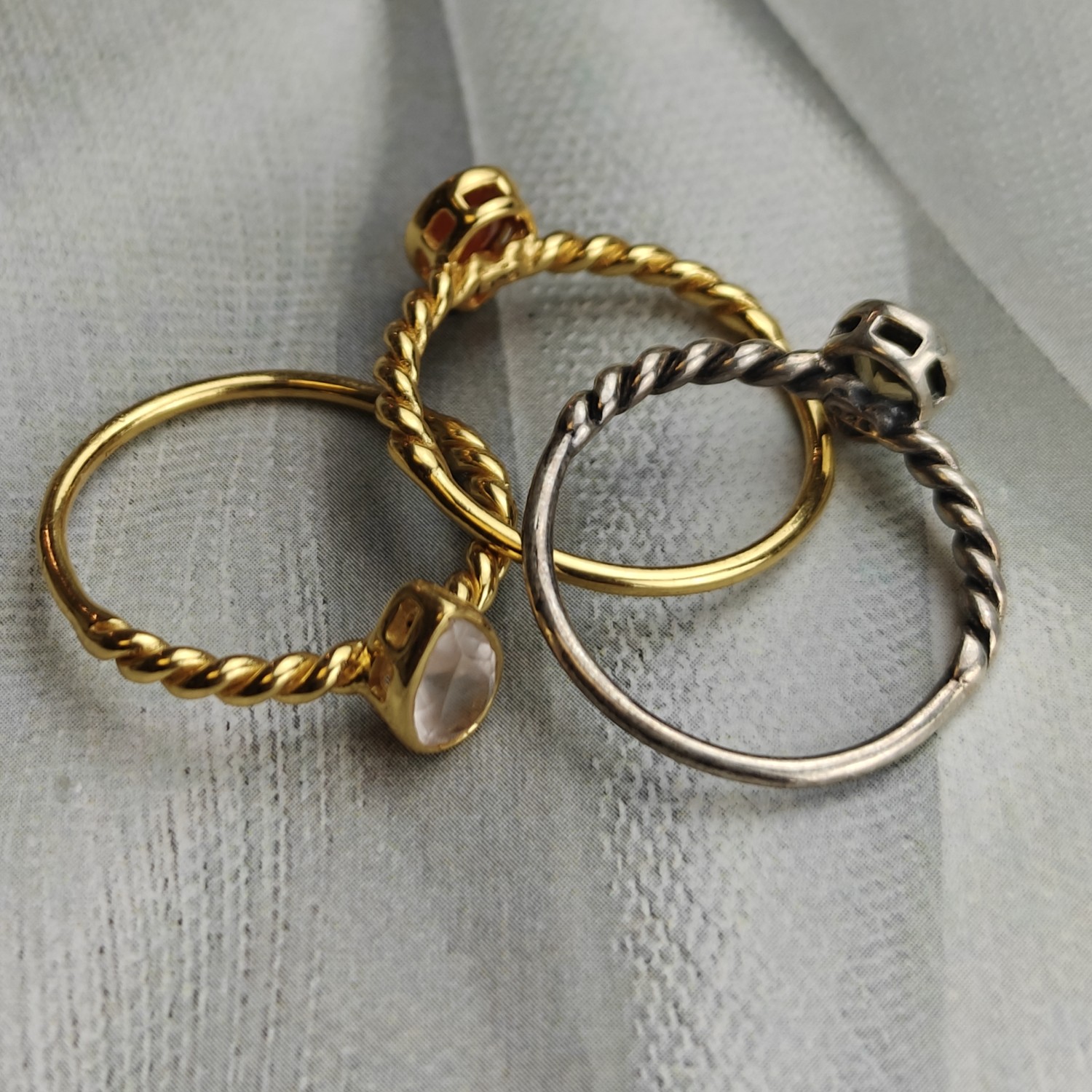 Set of 3 Rings: Rose Quartz, Smokey, Carnelian (sz 8)Set of 3 Rings: Rose Quartz, Smokey, Carnelian (sz 8)