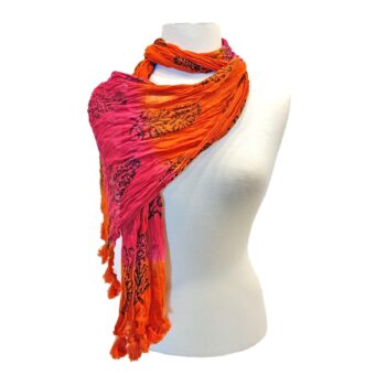 Cotton Crinkle Scarf Black on Pink